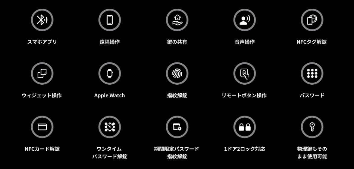 シーンやニーズで使い分ける、15タイプの施解錠方法。